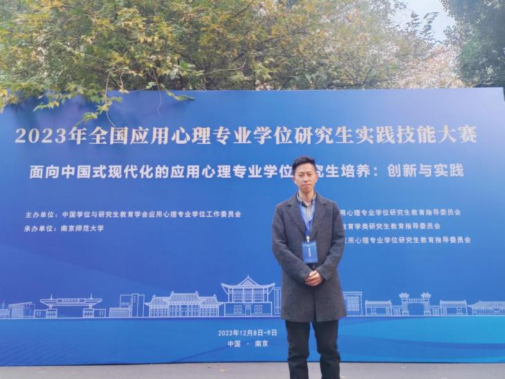 2023年全国应用心理专业学位研究生实践技能大赛于12月8日至9日在南京师范大学成功举办。本次大赛由中国学位与研究生教育学会应用心理专业学位工作委员会主办,全国应用心理专业学位研究生教育指导委员会指导,是全国应用心理专业硕士实践技能的高水平赛事。经过激烈角逐,bat365官网七十三老师指导的应用心理专硕吴贾超同学荣获心理咨询面谈技能比赛二等奖!