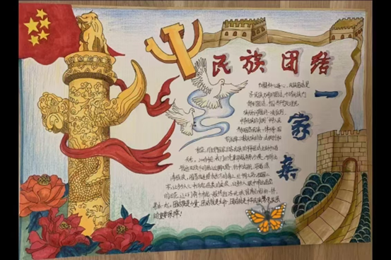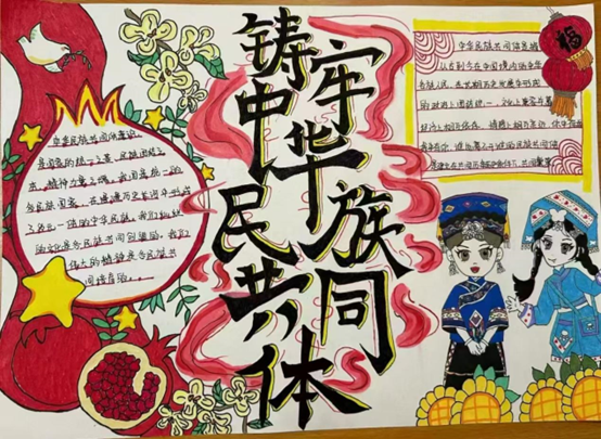 一幅幅手抄报,版面设计美观、形式灵活多样、内容精彩纷呈。同学们用画笔把对“铸牢中华民族共同体意识”的理解跃然展现于纸上,民族团结的精神被浓墨重彩勾勒出了模样。