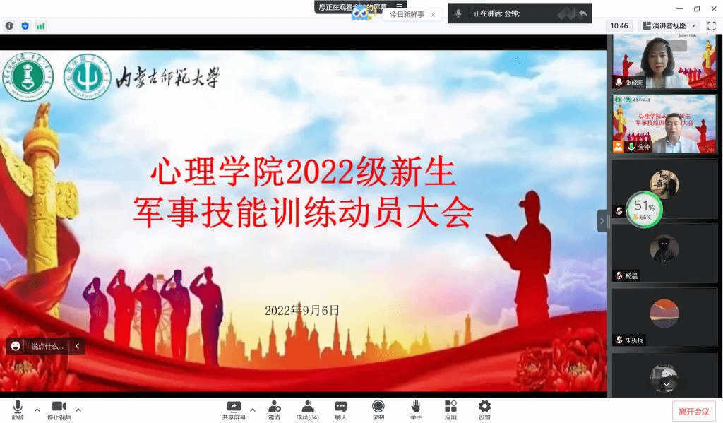 9月6日上午,bat365官方官网线上召开2022年度军事技能训练动员大会。学院党委副书记、副院长张晓阳、团总支书记刘敏及全体2022级本科新生参会,会议由院学生工作与就业指导办公室主任张金钟主持。