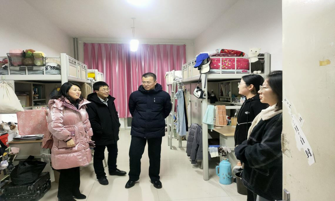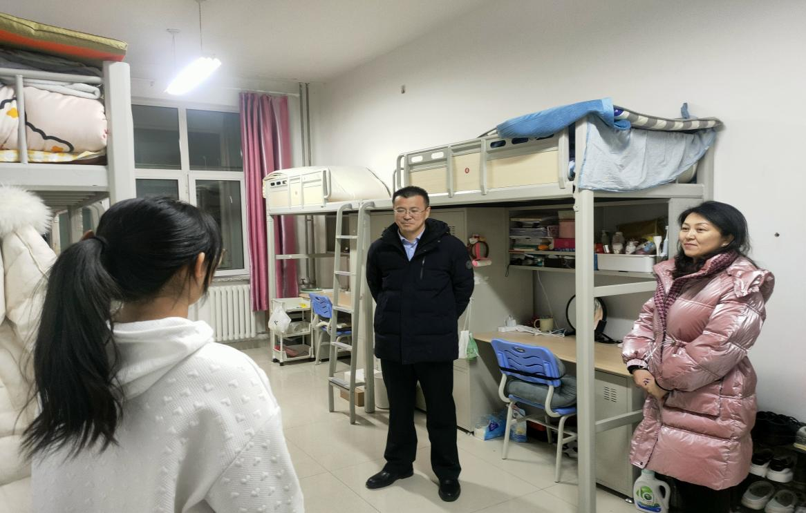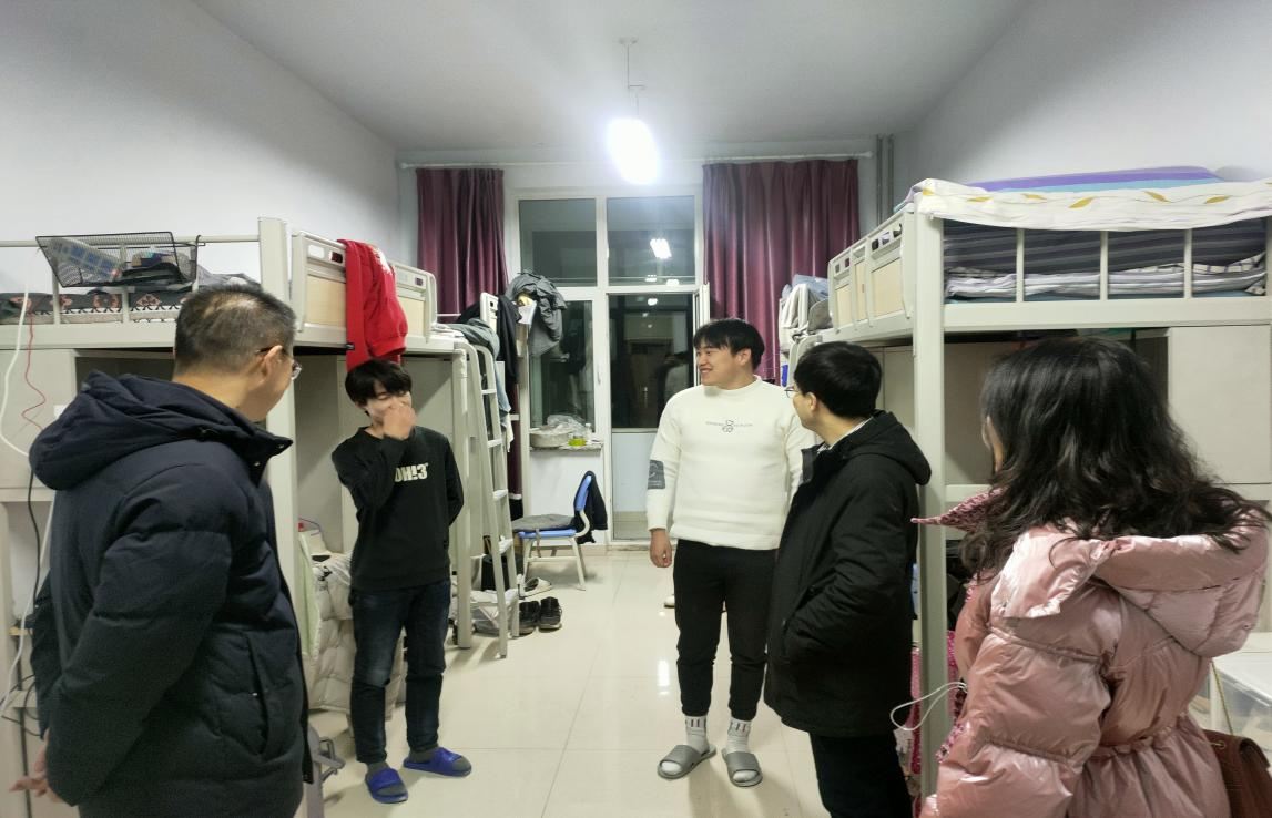 为了更好地关心假期留校学生,及时了解学生的思想状态和心理诉求,1月14日晚,bat365官方官网党委书记侯友、党委副书记副院长张春林、副院长金童林、学就办主任张金钟一行深入宿舍楼走访看望假期留校同学,为他们送去了温暖和关怀。