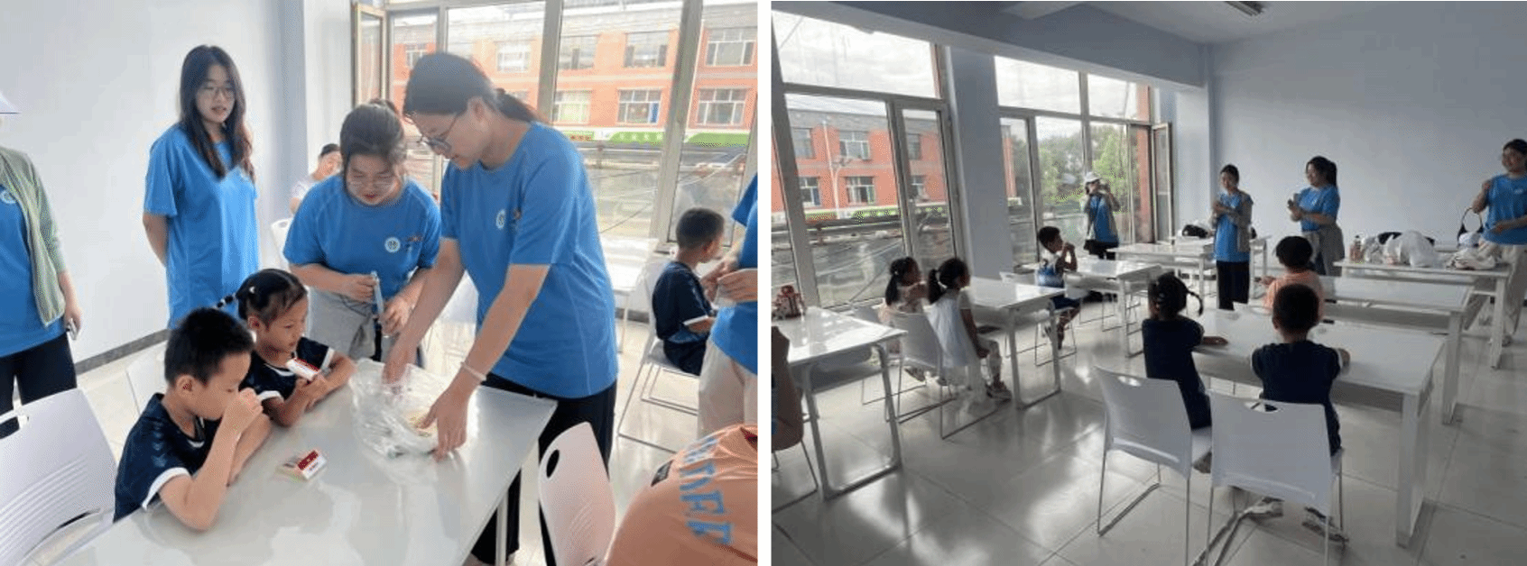 在劳动教育方面,团队与农户共同劳作,开展心理疏导,缓解农忙压力;同时为当地儿童开设趣味实践课堂,寓教于乐。
