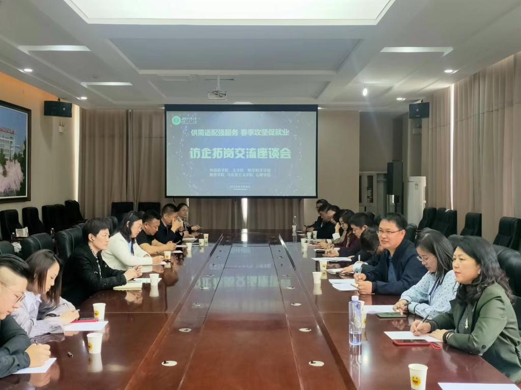 会场同步开展访企拓岗专项行动,承办学院负责同志、学就办主任及相关辅导员参加,邀请到准格尔旗教育体育局、杭锦旗教育体育局、乌拉特后旗第一中学、赤峰二中国际实验学校、内蒙古中银民商事调解中心、内蒙古运筹科技有限责任公司、内蒙古晟华生物科技有限公司、新东方教育咨询有限公司以及启航考研九家用人单位深入交流座谈。双方就人才需求、校企合作、人才培养、招聘计划等多方面达成合作意向。
