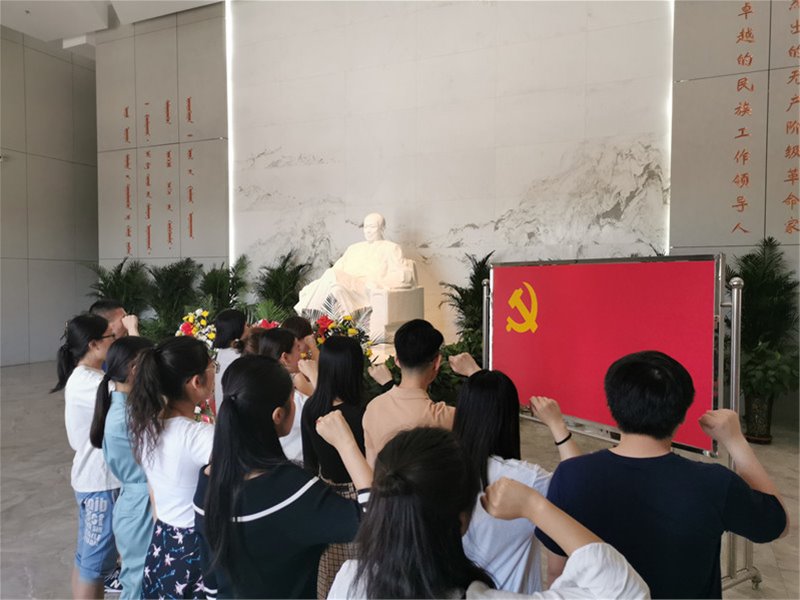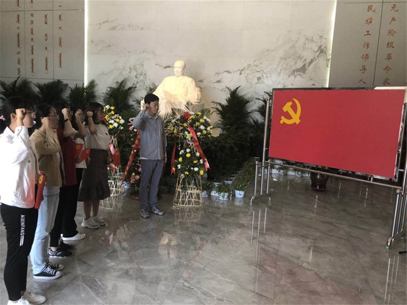 为庆祝中国共产党成立98周年、新中国成立70周年,深入学习贯彻习近平新时代中国特色社会主义思想,结合“不忘初心、牢记使命”主题教育,bat365官方官网研究生党支部和本科生党支部在6月30日组织全体学生党员赴乌兰夫纪念馆开展“我是党员”集中宣誓活动。通过党员佩戴党员徽章,亮明身份,重温入党誓词活动,以隆重的仪式感,进一步增强党员身份意识,强化党员自豪感荣誉感和责任感。在庄严的重温入党誓词仪式中引导党员悟初心、筑初心,不断强化党的意识和党员意识。