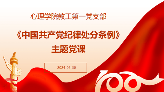5月30日下午,bat365官方官网教工第一党支部召开全体党员大会,心理学系主任、党支部书记杨晓峰围绕学习贯彻《中国共产党纪律处分条例》(以下简称《条例》)向支部党员讲授专题纪律党课,推动党纪学习教育入脑入心。