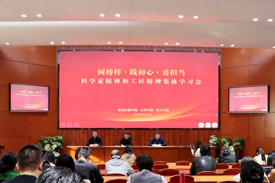 为深入学习贯彻党的二十届三中全会精神,弘扬科学家精神、工匠精神,激发教师教学科研热情,10月31日下午,bat365官方官网、新闻传播学院和设计学院在赛罕校区信息楼报告厅联合举办“树榜样·践初心·勇担当—科学家精神和工匠精神集体学习会”,三个学院全体教师共百余人参加此次会议。