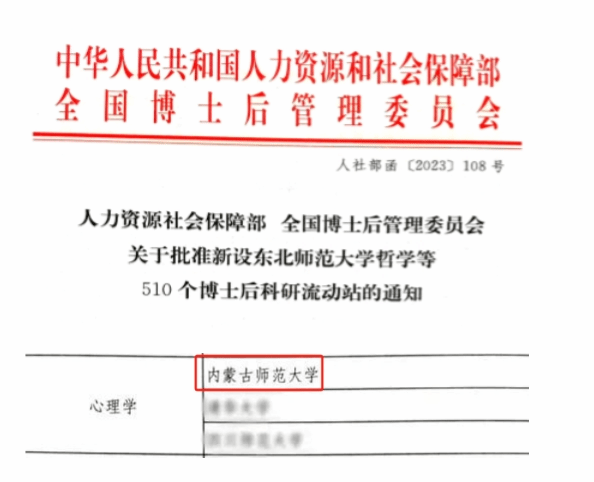 近日,人力资源社会保障部、全国博士后管理委员会联合下发《关于批准设立东北师范大学哲学等510个博士后科研流动站的通知》(人社部函〔2023〕108号),bat365官网心理学博士后科研流动站成功获批。