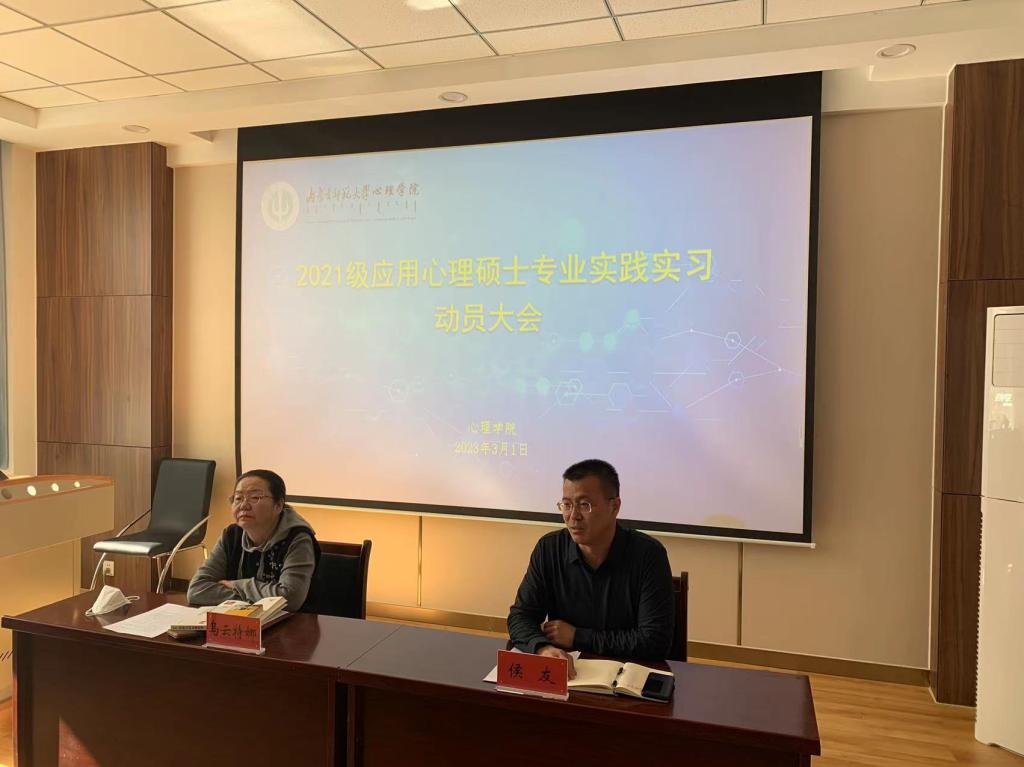 3月1日上午,bat365官网召开2021级应用心理专业硕士研究生实习实践动员会,院长乌云特娜教授、副院长侯友副教授,部分指导教师、班主任老师及2021级应用心理专业全体研究生参加动员会。