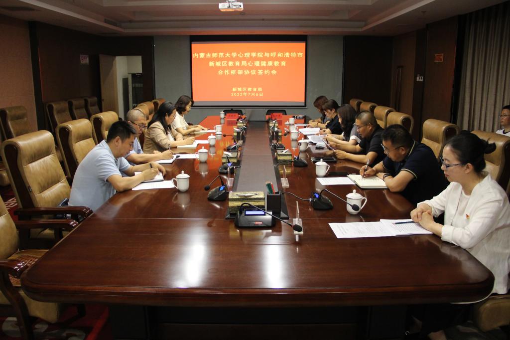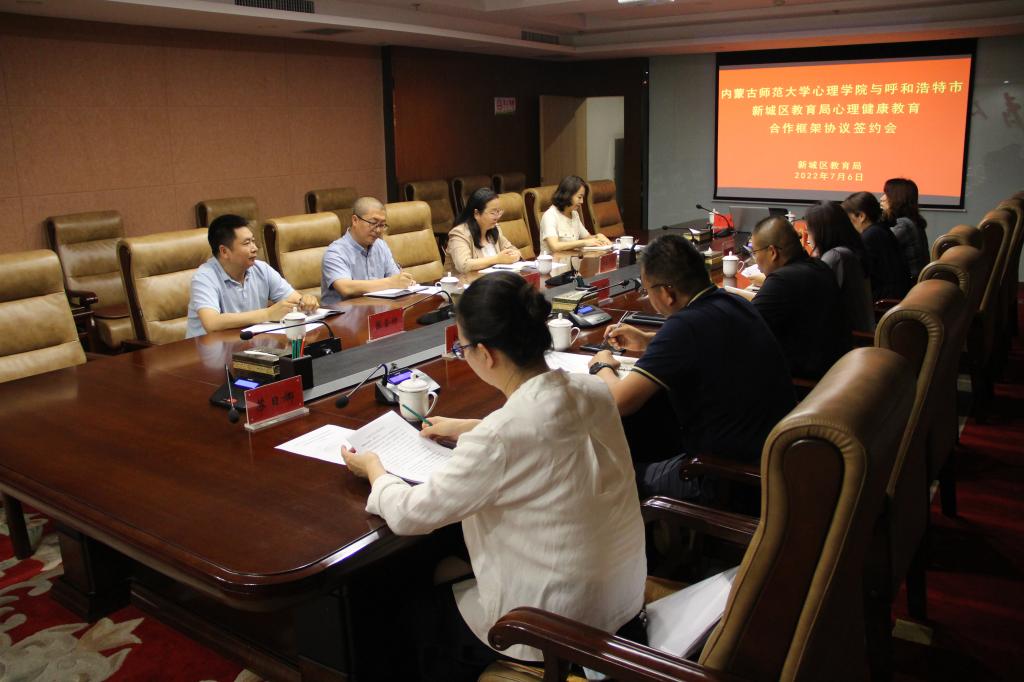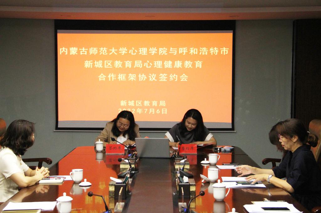 为进一步加强实践教学,提升人才培养质量,促进毕业生高质量就业,发挥学科专业优势,助力社会心理服务体系建设,7月6日下午,bat365官网与新城区教育局心理健康教育合作框架协议签约暨bat365官方官网教育实践与就业基地挂牌仪式隆重举行。新城区教育局党组书记、局长黄咏梅,新城区教育局副局长商辉、郝素兰、卜二军,新城区教育局机关纪委书记武爱珍;bat365官方官网院长乌云特娜,院党委副书记、副院长张晓阳,心理学系系主任杨晓峰,学生工作与就业办公室主任张金钟等参加会议。