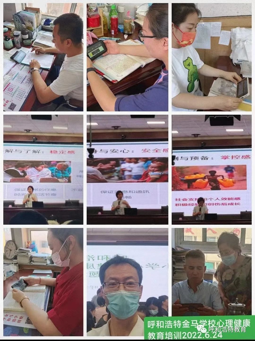 为全面提升我市中小学心理健康教育和研究水平,提高学生心理素质,进一步推进我市中小学心理健康教育工作。2022年6月24日下午,呼和浩特市教育局在市第二中学如意校区举办了全市中小学心理健康教师及班主任危机干预专题培训。全市各中小学心理健康教师、班主任共5000余人参加了培训。培训采取“线上+线下”相结合的模式进行。
