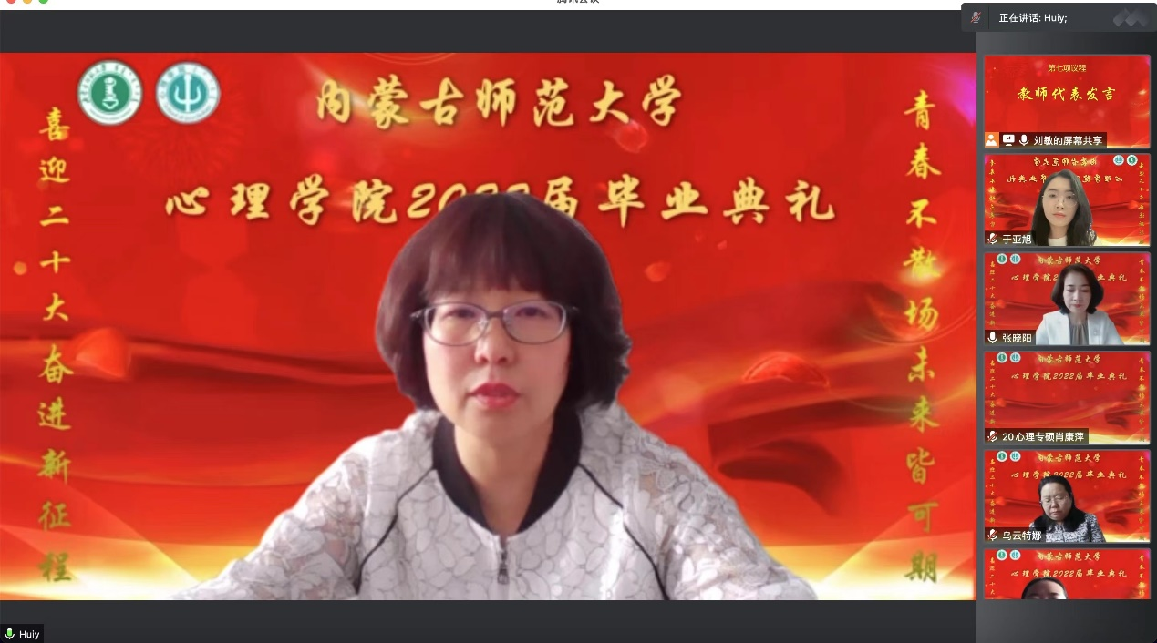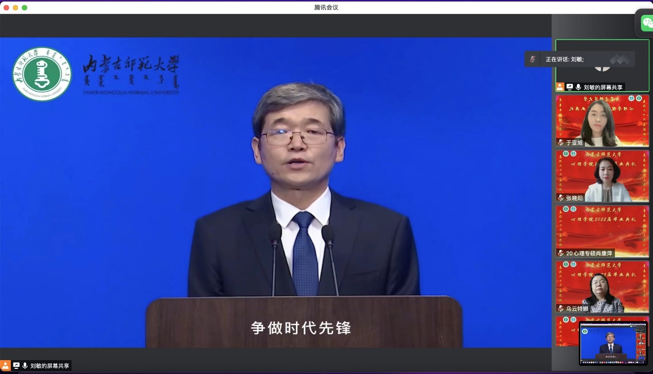 bat365官方官网院长、博士生导师乌云特娜教授为全体毕业生送上深情寄语。她称赞同学们在疫情的考验之下仍然能够以理性平和的心态去处理问题,殷切嘱托同学们要脚踏实地、不忘初心,也要志存高远。牢记习近平总书记在今年建团百年讲话上对青年的殷切期望。最后乌院长教诲同学们,要常怀感恩,bat365官方官网永远是我们共同的家,欢迎大家随时回家。