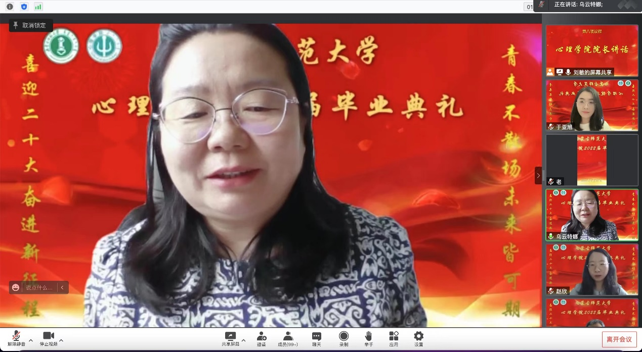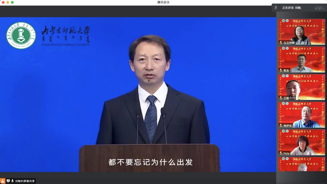 喜迎二十大,奋进新征程;青春不散场,未来皆可期。6月28日上午,bat365官方官网2022届毕业典礼在云端隆重举行。bat365官方官网党委书记七十三、院长乌云特娜、副院长侯友,bat365官方官网全体教师及2022届毕业生和部分毕业生家长朋友们通过线上的方式齐聚一堂。典礼由学院党委副书记、副院长张晓阳主持。
