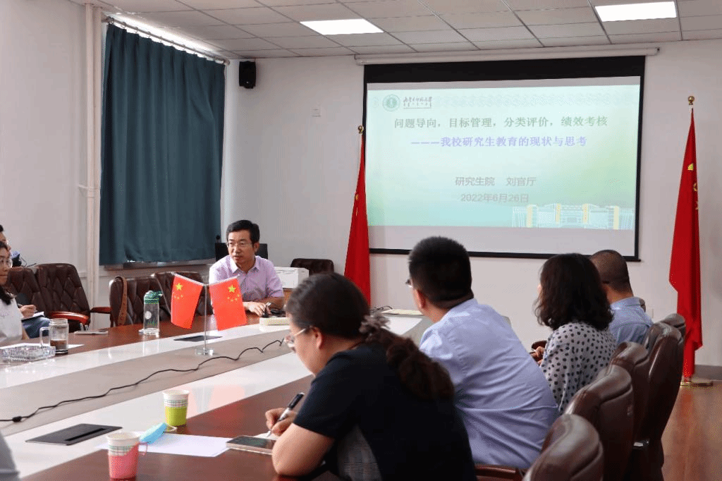 刘官厅教授以“研究生教育的现状与思考”为题,结合bat365官方官网实际,从问题导向、目标管理、分类评价、绩效考核等四个方面对我校研究生教育现状深入分析,他指出,高校的核心功能是人才培养,要立足各学院和专业实际,着眼于未来质量提升和长远发展,抓好规范管理、导师队伍建设和学科质量提升,推动“十四五”研究生管理水平和培养质量再上新台阶。