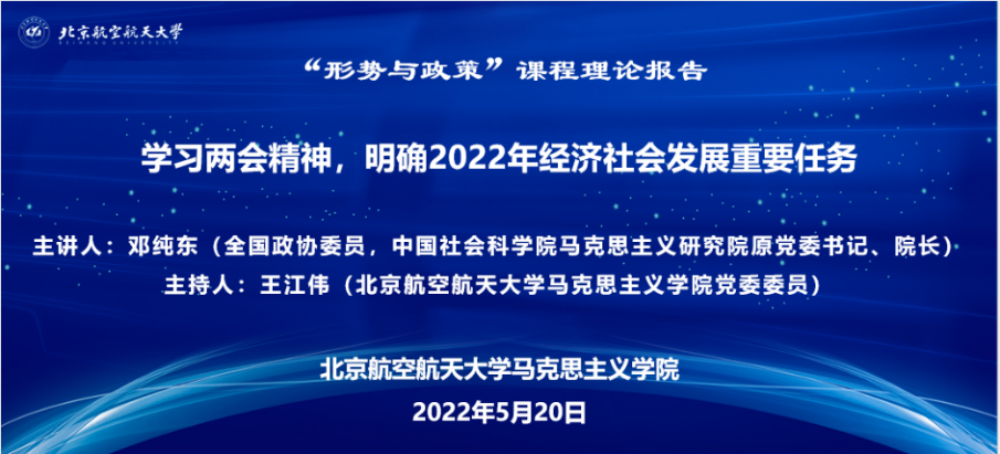 2022年5月20日上午,bat365官网“形势与政策”课程邀请全国政协委员、中国社会科学院马克思主义研究院原党委书记、院长邓纯东研究员走进bat365官网思政课课堂,作《学习两会精神,明确2022年经济社会发展重要任务》的专题报告。报告采取“腾讯会议+直播”的形式进行,bat365官网2021级本科生在线聆听,bat365在线中国登录入口部分教师旁听了讲座。报告由bat365官网bat365在线中国登录入口党委委员、“形势与政策”课程负责人王江伟主持。