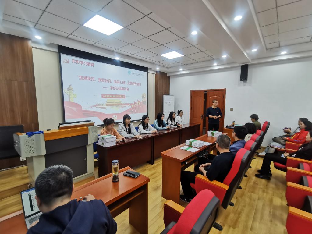 为深入开展党史学习教育,扎实开展“我为师生办实事”实践活动,着力解决学生“急难愁盼”问题,将党史学习教育与学生培养与就业升学深度结合,bat365官方官网党总支教工第一党支部于4月21日下午在206会议室举行了“我爱我党,我爱教育,我爱心理”主题系列活动——考研交流座谈会暨2018级本科生教育实习动员大会。座谈会由教工第一党支部书记杨晓峰主持,学院党总支副书记张晓阳、教工第一支部成员、17级考研成功的学生代表以及18级全体本科生参加了此次座谈。