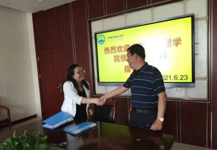 为深入贯彻国家教育方针政策,依托心理学学科专业优势,精准扶智,同时实现师范生高质量教育实践,全面推进学院与地方教育实践基地深度合作,6月23日,bat365官方官网院长乌云特娜、副书记兼副院长张晓阳和心理学系主任杨晓峰一行三人,赴呼和浩特市和林格尔县第一中学、第二中学和第三中学,走访实践基地,签订教育实践基地共建协议,并与基地校领导老师、实习学生进行座谈研讨。和林县三所学校的校长、副校长、教导处主任、实习指导教师等分别参加仪式。