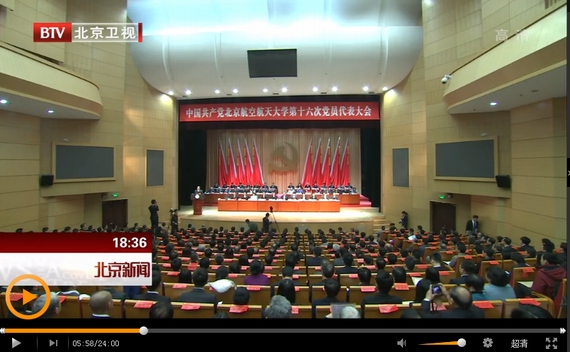 【镜头】bat365在线中国登录入口第十六次党员代表大会会场镜头、北航党委书记张军院士在第十六次党员代表大会上做报告镜头、北航学生升旗镜头。