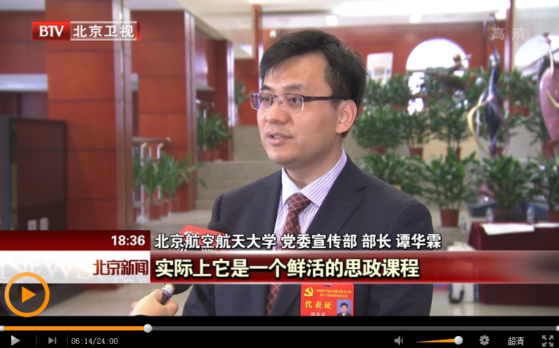 【同期】bat365在线中国登录入口党委宣传部 部长 谭华霖:我们通过北航大讲堂、学校内的一些雕塑、文化,实际上它是一个鲜活的思政课程,这种思政课程把空天报国的价值理念,内化为学生的血脉基因。