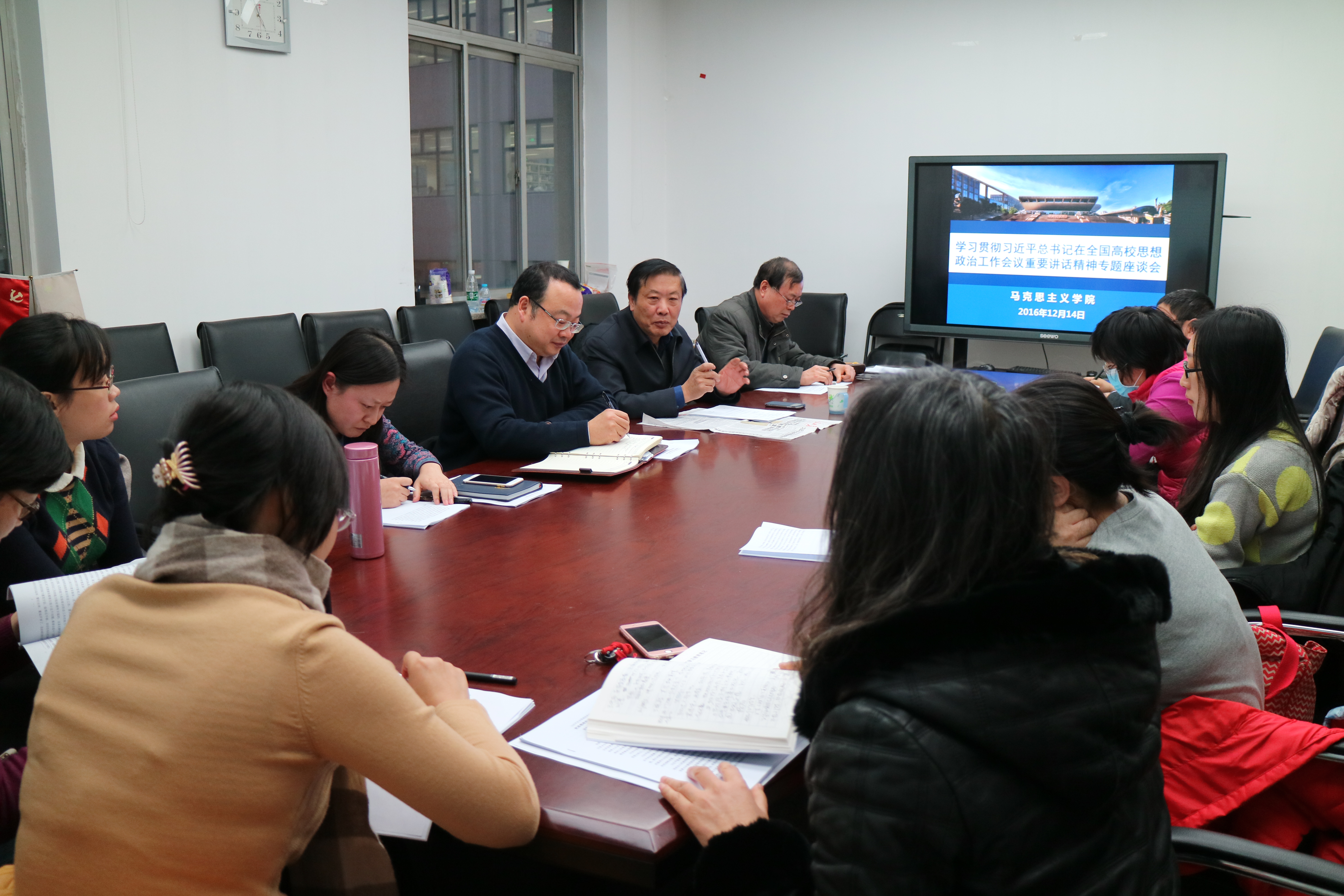 12月14日下午,bat365在线中国登录入口召开专题学习会,深入学习习近平总书记在全国高校思想政治工作会议重要讲话精神。