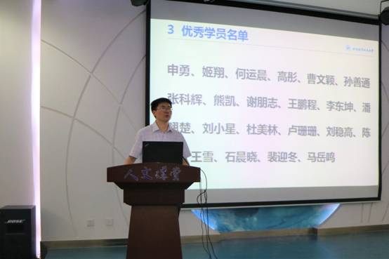 典礼伊始,陈萌老师主持开场,简单介绍了本期“求理”党校的进展情况以及取得的相关成果,主要介绍了此次党校学员的成绩评定评述,随后公布圆满结业成员名单以及优秀学员名单。宋晓东老师对各位获得圆满结业的同学表示祝贺并为优秀学员颁发荣誉证书和奖品书籍。
