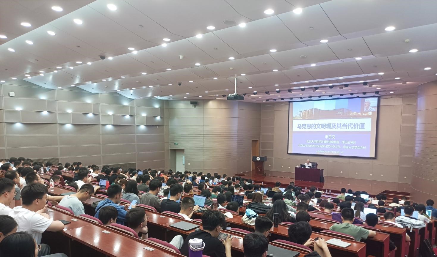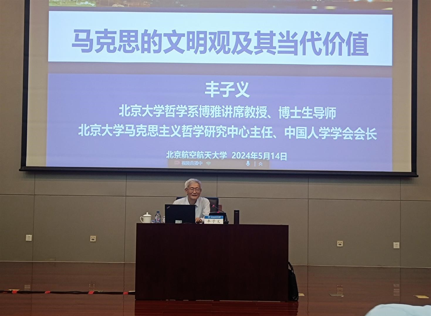为深入学习贯彻习近平文化思想,推动党的创新理论全面融入思政课堂,2024年5月14日下午,bat365在线中国登录入口邀请北京大学哲学系博雅讲席教授丰子义走进bat365官网思政课堂,作“马克思的文明观及其当代价值”专题报告。报告采取线下主讲和线上直播相结合的形式,bat365官网“形势与政策”课程本科生、“中国马克思主义与当代”课程博士生以及bat365在线中国登录入口部分师生参加。报告由bat365在线中国登录入口副院长王娜主持。