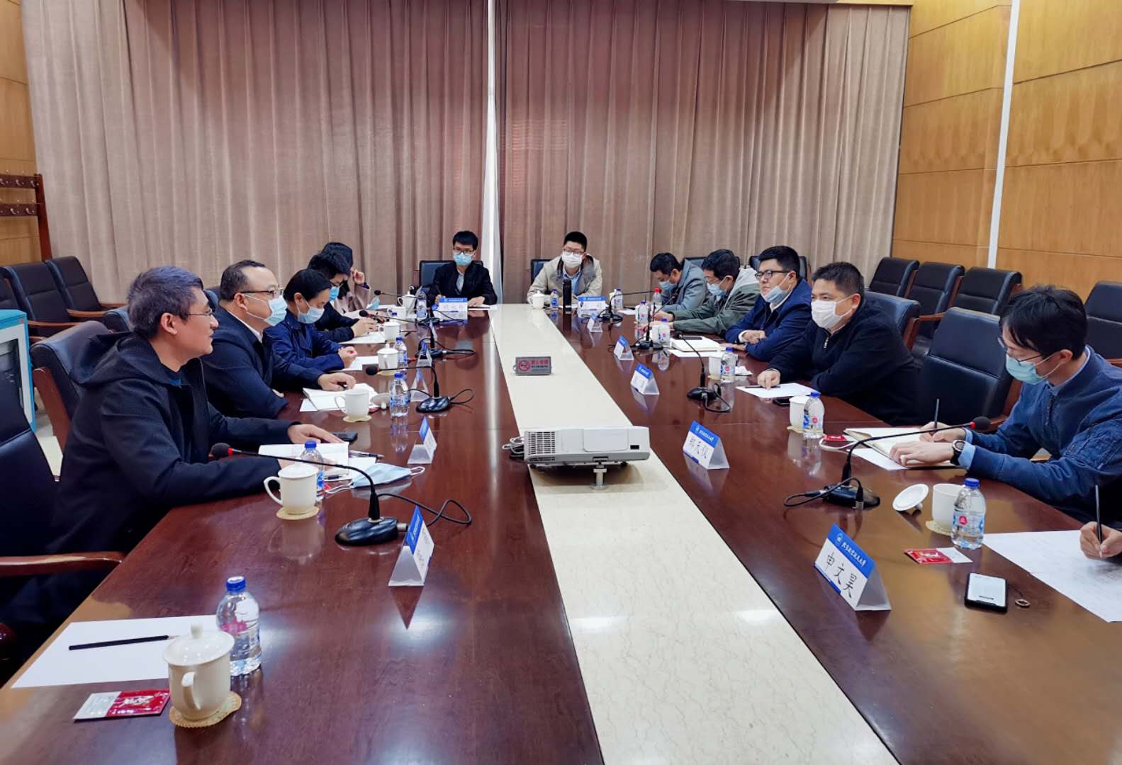 座谈会前,校党委副书记赵罡与狄涛见面并做了工作交流。