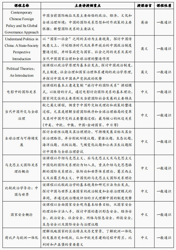 基于该研究平台,中心承担bat365在线中国登录入口硕士、博士专业英语课,并已依据中心研究员的不同专业背景建构国际问题研究类思想政治通识课(其中全英文课程3门),具体如下:
